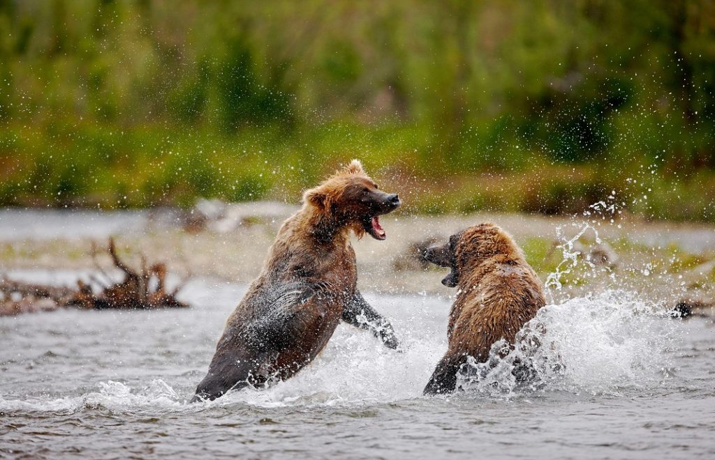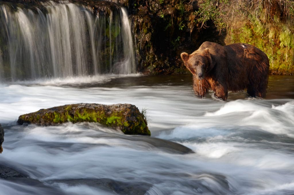 Deretter blir det guidet bjørnetitting med pontongbåt, med stopp i Wolverine Creek Cove. Fra båten kan du observere Alaskas fantastiske bjørner i deres naturlige leveområder.