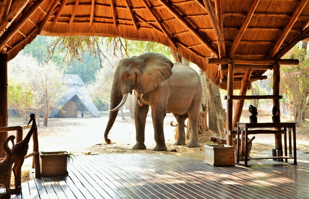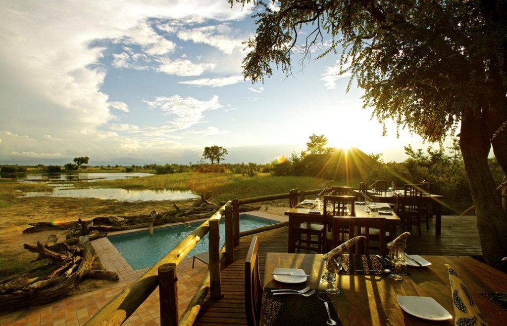 Denne flotte lodgen ligger ved Ruckomeshi-elven, rett utenfor Mana Pools nasjonalpark.