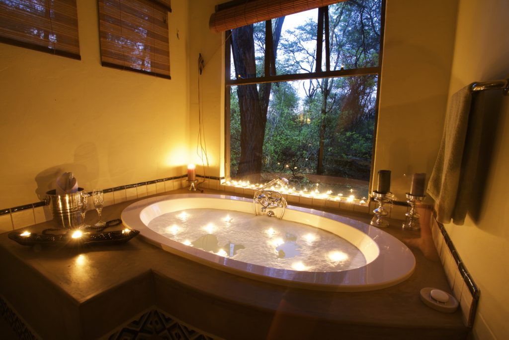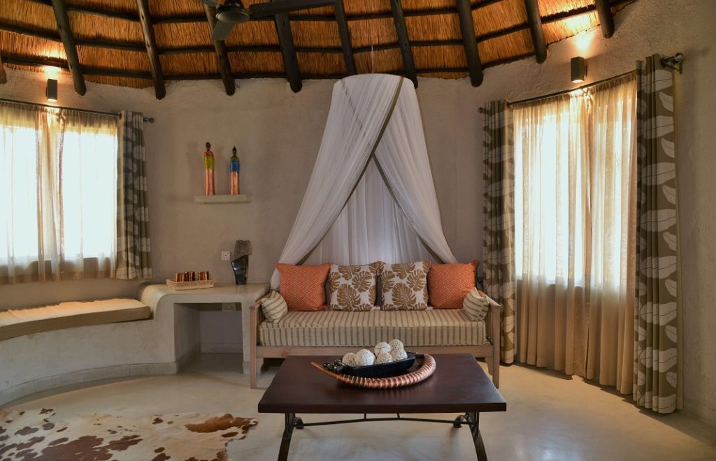 Camelthorn tilbyr 8 luksuriøse villatelt med veranda på bakkenivå, store bad, peis, takvifte, te/kaffekoker, hårføner, myggnett, badekåper, safe og minibar.