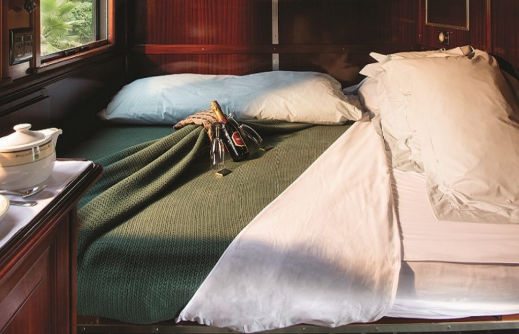 Toget tøffer gjennom et vakkert slettelandskap. Utenfor vinduet kan du se antiloper som gresser eller bykser av sted. Landsbyer, giraffer og tomme vidder. Mektige fjell og historiske steder. Krystallglassene er fylt med den beste vin. Springbuksteken smelter i munnen. Kupeen består av mahognivegger og en stor myk dobbeltseng. Fra et velkledd orkester fylles rommet av myke toner. Servitøren spør om glasset må fylles. Du lener deg tilbake i en myk lenestol og nyter øyeblikket.