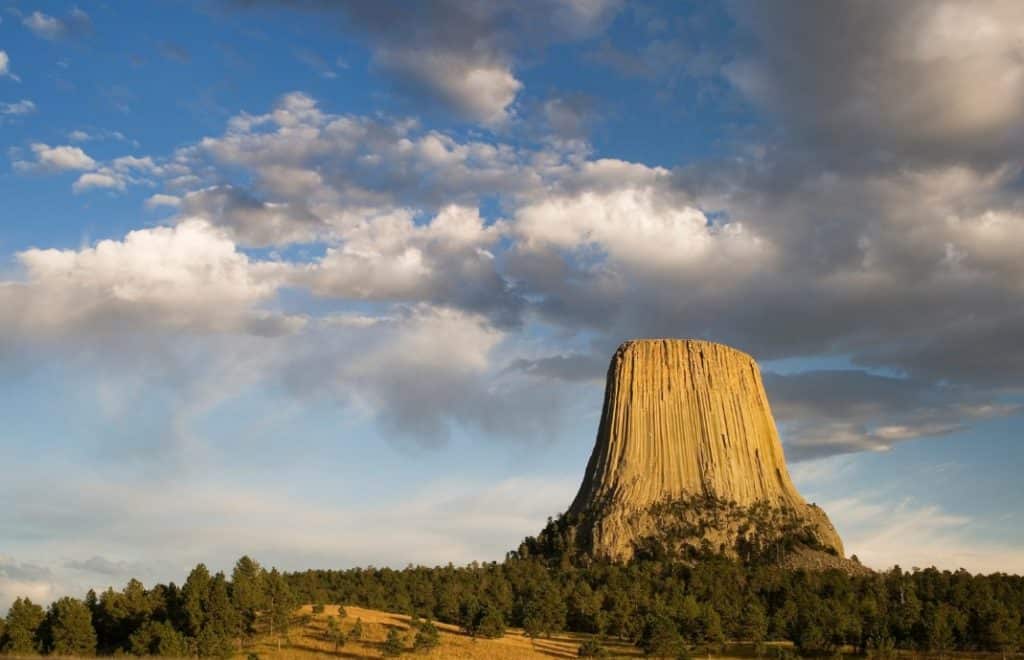 Devils Tower, eller «Djevelens tårn», er et mystisk utseende fjell. Det rager 264 meter opp over det bølgende prærielandskapet, er flatt på toppen og har nesten loddrette klippevegger. Ved foten ligger noen kjempestore klippeblokker hulter til bulter, som falne søyler fra et tempel.